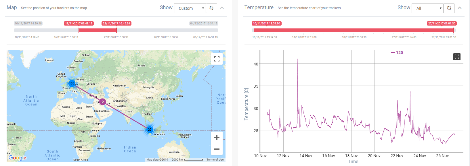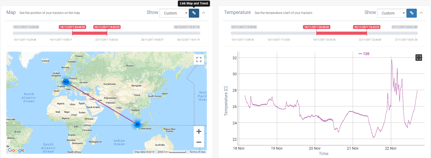 We can see on the map the period selected, or we can link also the trend on the same period.